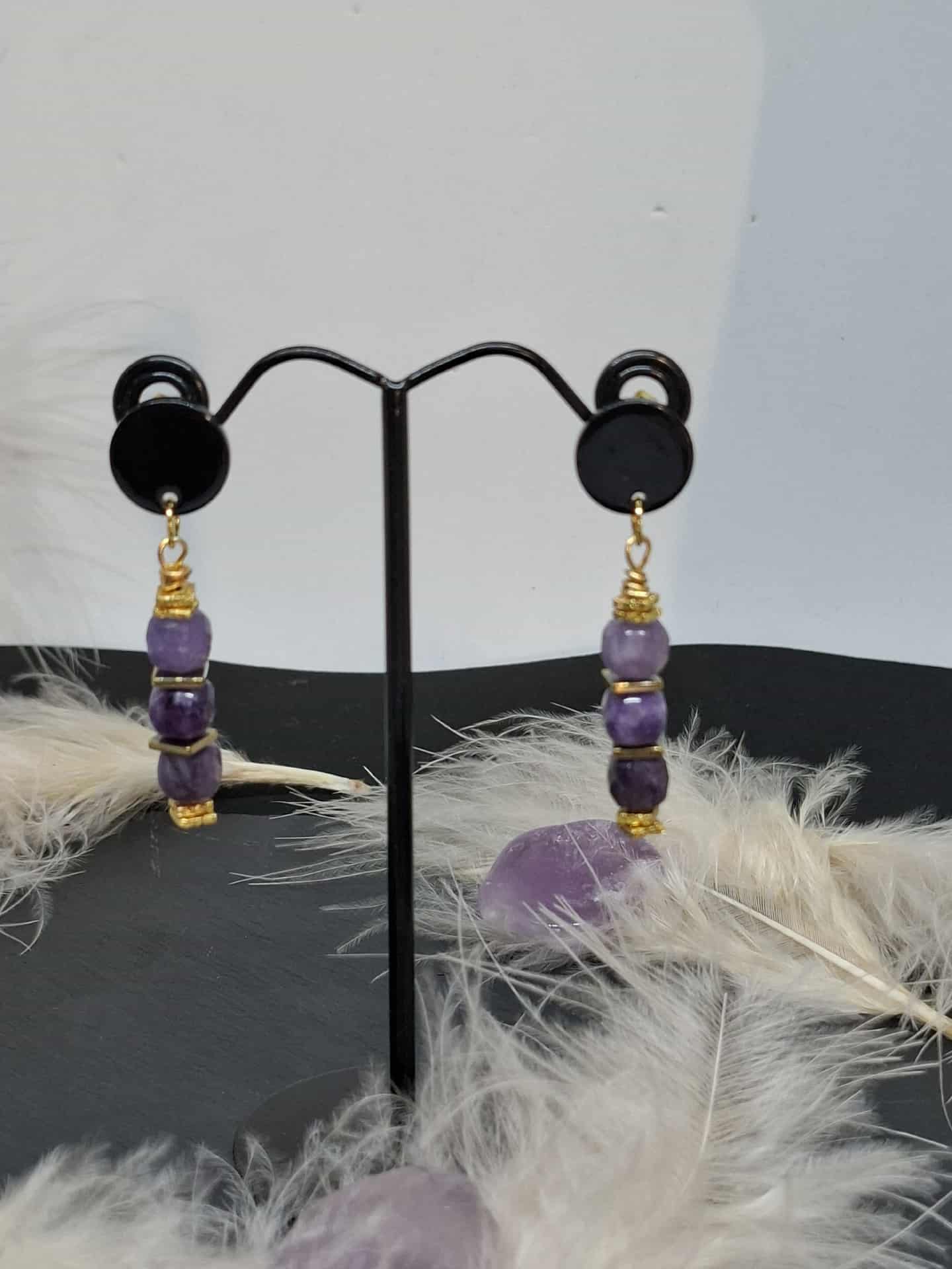 Boucles composées de perles en forme de cube en améthyste.