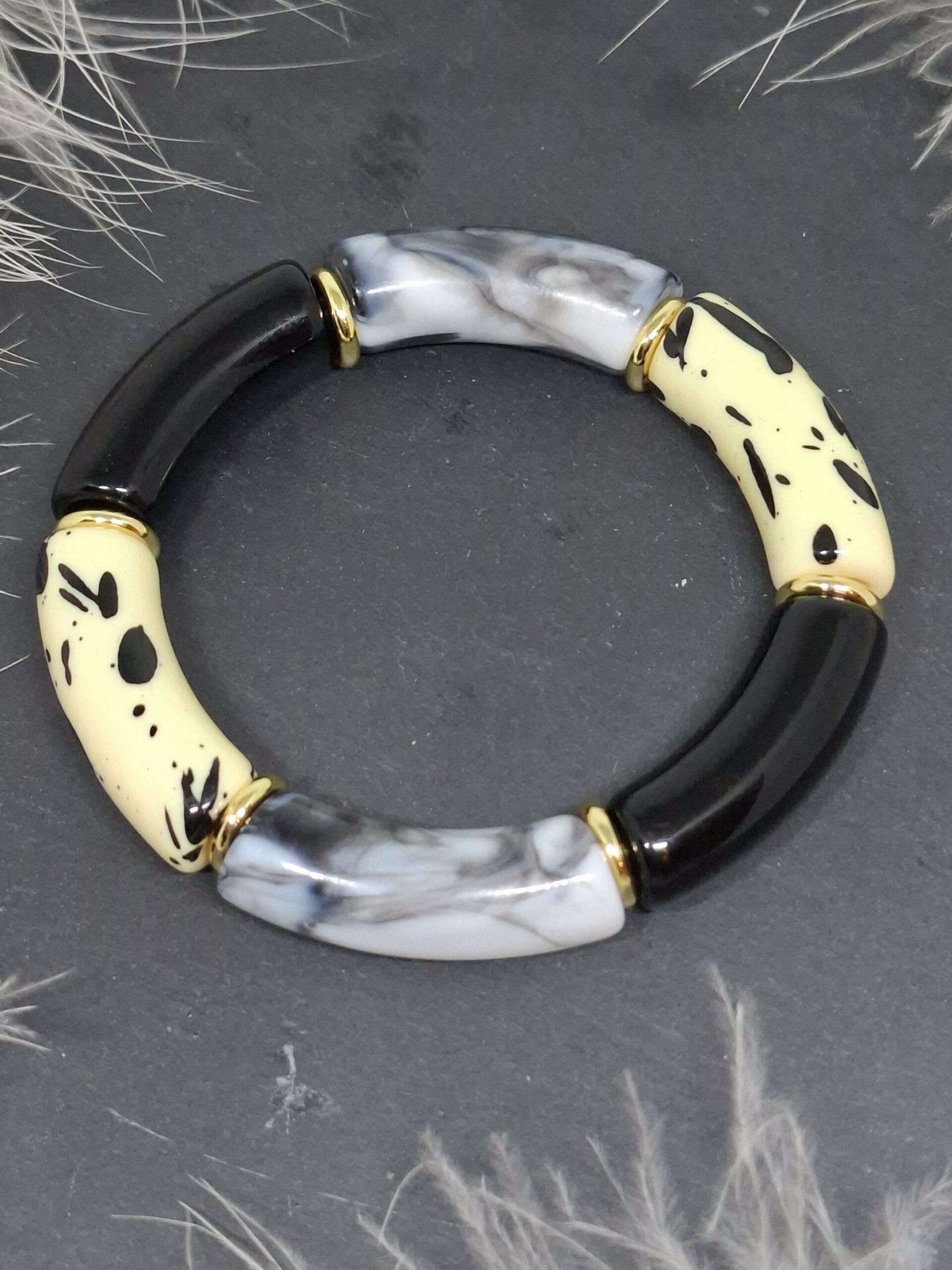 Bracelet élastique en perles tubes en acrylique.