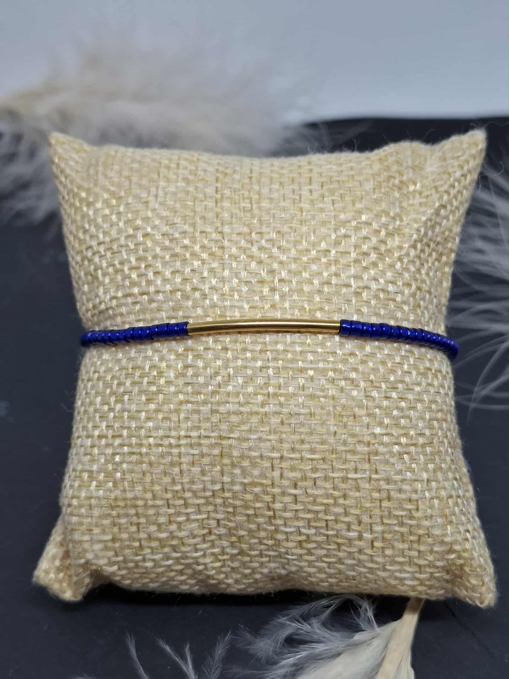 Bracelet en perles Miyuky bleues, perle tube en acier inoxydable.