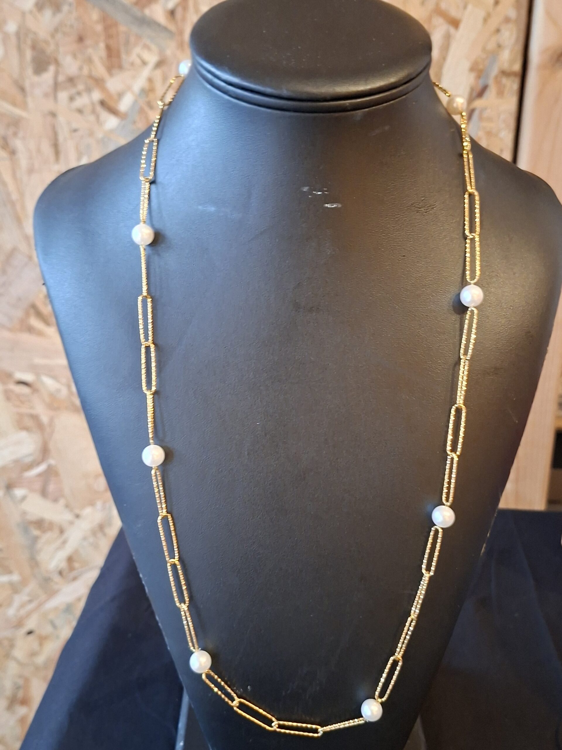 Collier Sautoir Chaîne à Gros Maillons & Perles Nacrées