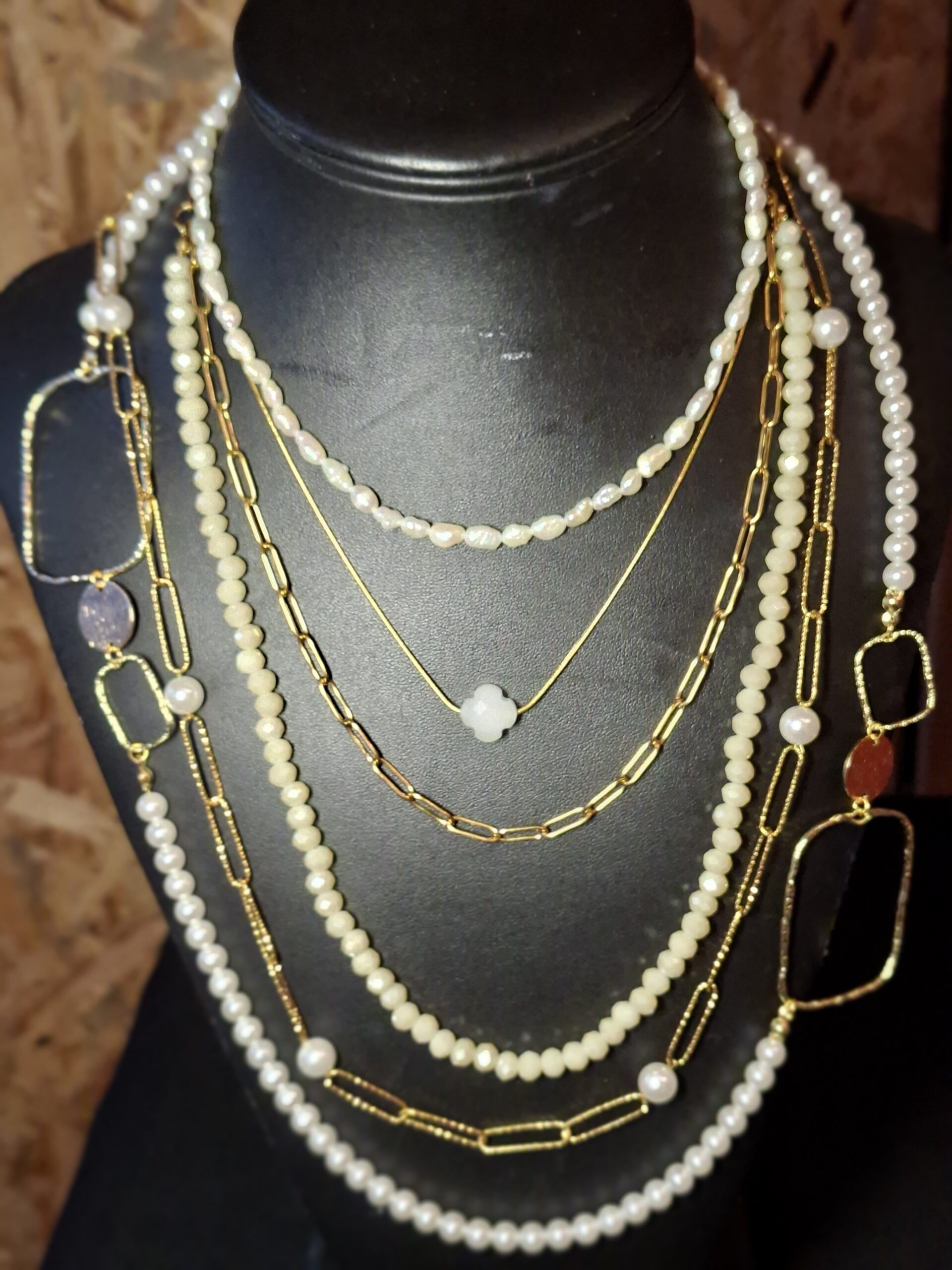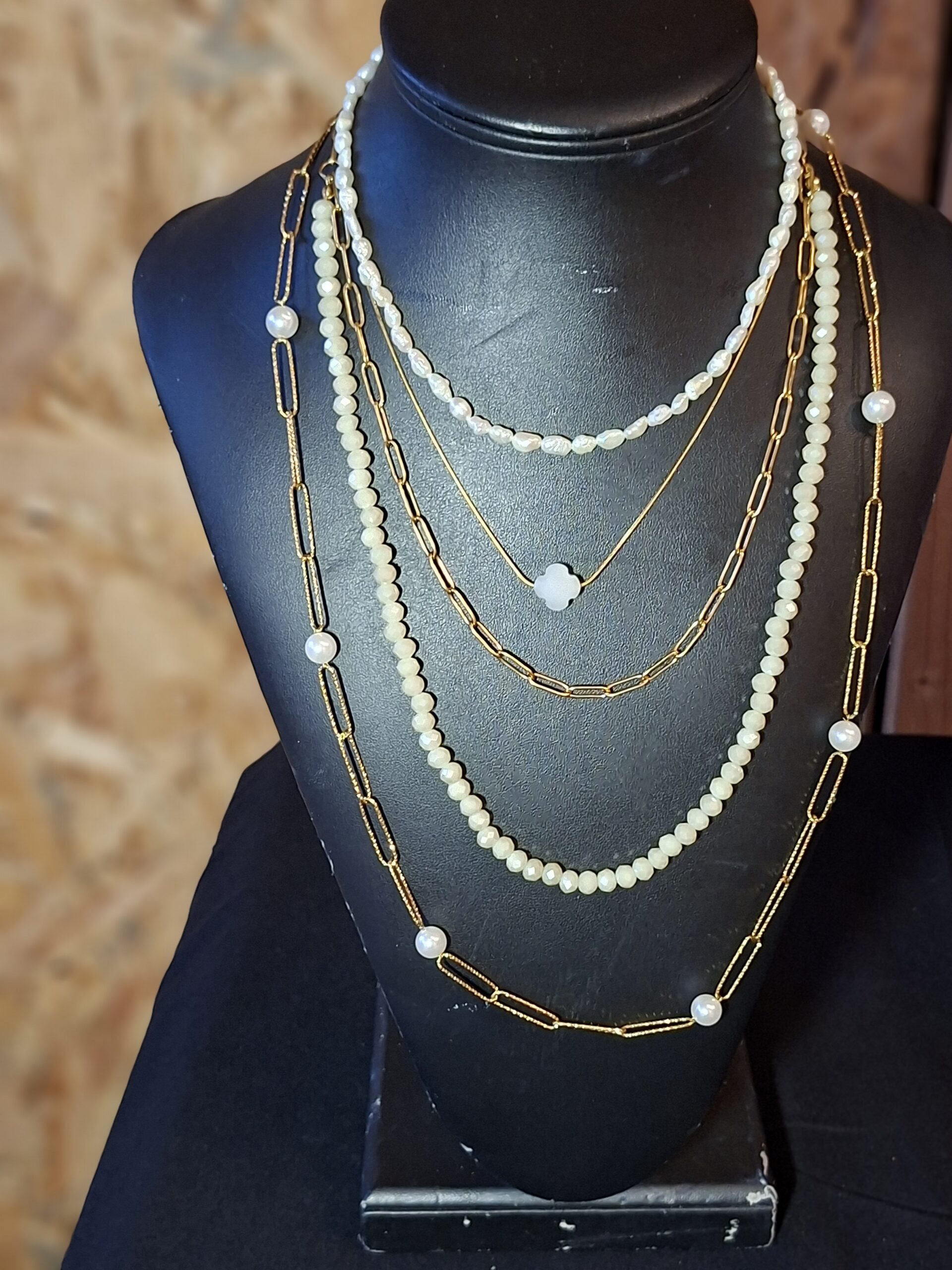 Élégant, intemporel et lumineux, ce collier est composé d’une chaîne en acier inoxydable martelé à gros maillons, ponctuée de perles en verre nacrées qui apportent une touche de douceur et de raffinement.
