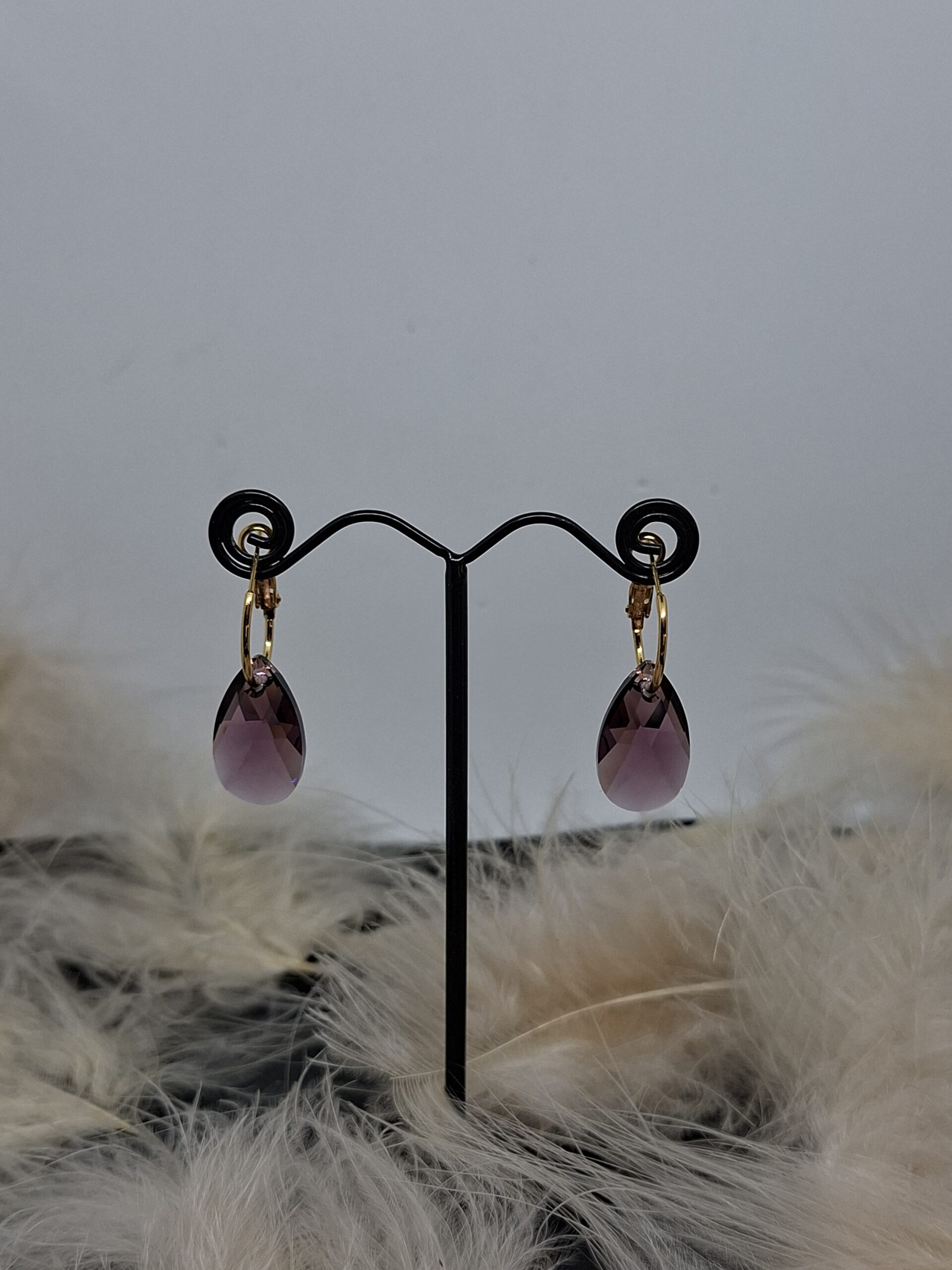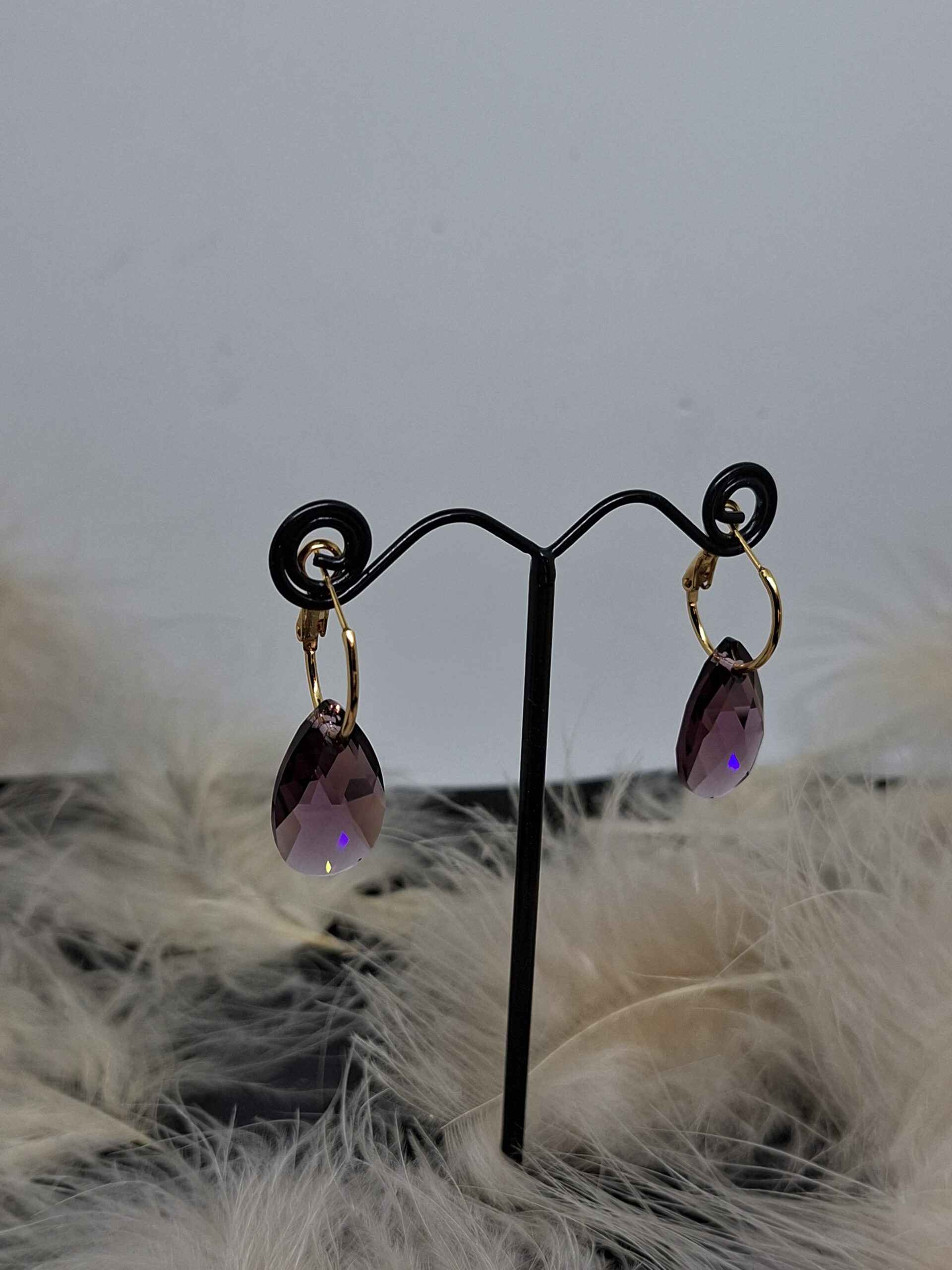 Une Goutte de cristal Swarovski Amethyst doré sur une petite créole dorée.